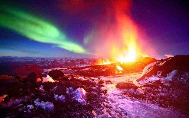 Image | A Volcano explodes with Aurora Borealise Northern Lights & Lava | Photographer | James Appleton