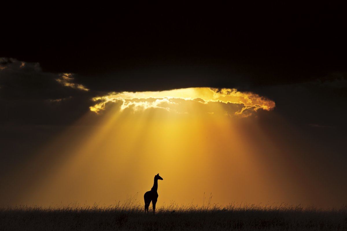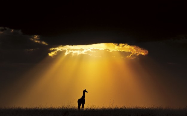 Image | Andy Rouse | African Wildlife Winner: A solitary Masai giraffe is showered by light in a magnificent sun burst at Masai Mara National Reserve, Kenya | via: Smithsonian Natural History Museum