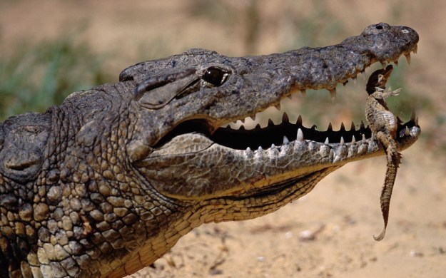 Crocodiles are some of the best parents in the reptile world. A female crocodile builds a nest on the ground, and although she doesn’t sit on the eggs, she is on guard at the nest and assists the eggs to hatch. Sometimes both parents look after and protect the young. Around 9 weeks after laying the eggs, chirping sounds come from the nest – the babies are hatching! Whether males or females are born depends upon the temperature of the nest. If a nest is warm, males hatch. If a nest is cool, females. If the temperature is in between, both males and females hatch. Hearing the chirping, the mother uncovers the eggs, picks up the babies, and carries them to the water. If there are any unhatched eggs she will roll them around in her mouth until the shell cracks to help the babies hatch. They are around 23cm long and are able to swim and catch food right away, however they do still need protection, so they always stay close to their mother. They may even bask on her head or back. If in danger, the hatchling cries out bringing the mother to the rescue right away. Hatchlings sometimes stay with their mothers for up to a year or more.